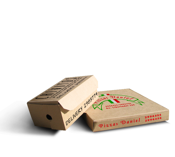 • Cajas de cartón impresas para pizzetas y chivitos personalizadas y a todo color.